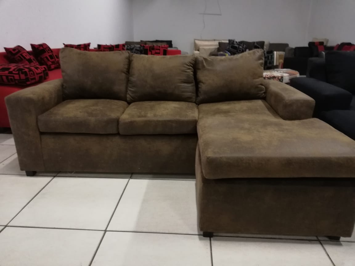 1.5× 2 meter 3 piece including ottoman. Med to firm. Ideal for max 90kg per person. Available in many colours. Chase side left or right. Most items and colours in stock delivery next day, however at times when fabric availability is a problem it should be delivered in less than 2 weeks.